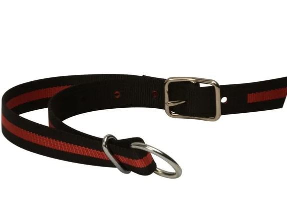 Kuhalsbånd sort/rød X cm lange 40 mm x 3.0 mm m/nylonforsterknin