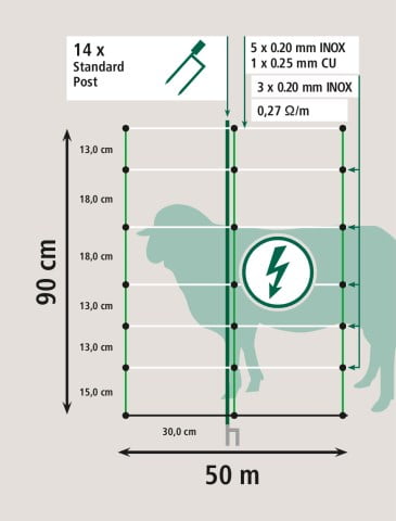 TopLine Plus Sauenett er 90cm høyt og 50meter langt